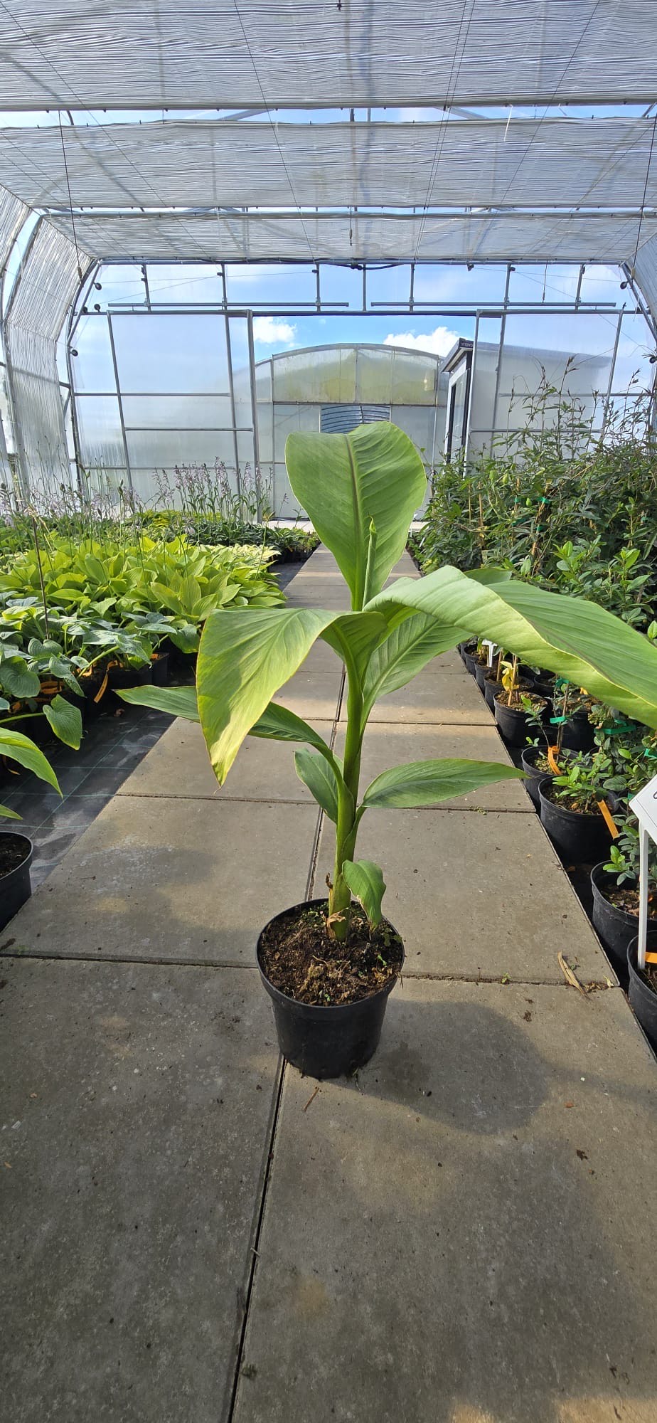 Bananowiec MUSA BASJOOZnany jako bananowiec japoński, to mrozoodporny gatunek bananowca pochodzący z Japonii. Jest to bylina o pniowatych niby łodygach, które osiągają do 2-2,5 m wysokości, z ogromnymi, sztywnymi liśćmi sięgającymi 2 m długości i 70 cm szerokości. Roślina jest uprawiana głównie jako ozdobna, charakteryzuje się dużą tolerancją na niskie temperatury, a jej owoce są niejadalne. Wytwarza kwiaty męskie i żeńskie na tym samym kwiatostanie, który może mieć ponad 1 m długości.. Podstawowe informacje: Barwa kwiatów: żóta Barwa liści: zielona Okres kwitnienia: czerwiec-wrzesień Okres owocowania: --- Stanowisko: słoneczne Wymagania: najlepiej lekka, przepuszczalna, żyzna gleba Wysokość: ok. 2-2,5 m Uprawa i ciekawostki