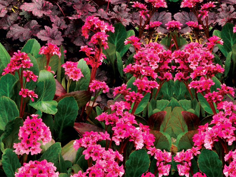 Bergenia 'Bergeniax hybrid' Pink Dragonfly Bergenia oprócz zwartego wzrostu i jaskrawego koloru kwiatów wyróżnia się jeszcze jesiennym i zimowym przebarwieniem liści, które stają się wtedy ciemno czekoladowe. Zieloną barwę odzyskują dopiero późną wiosną, zwykle po kwitnieniu. Jest rośliną zimozieloną i bardzo tolerancyjną. Nowa odmiana znanej bergenii o miniaturowym, kompaktowym wzroście i intensywnej barwie kwiatów. Osiąga zaledwie 15 cm wysokości rozrastając się bardzo wolno do średnicy około 25 cm. Na przełomie kwietnia i maja zakwita na intensywny, różowy kolor. Bergenia lubi cień i stałą wilgotność gleby, jednak dobrze znosi też inne warunki, w tym słoneczne stanowisko oraz niedobory wody. Nie straszne jej mrozy, choroby i szkodniki