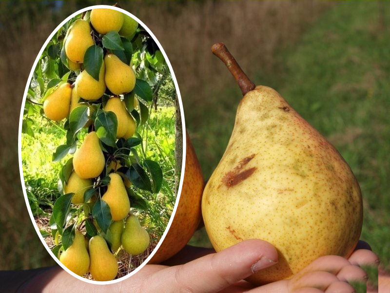 pyrus ''Konferencja'' -forma kolumnowa  Drzewo rośnie średnio silnie. Rodzi owoce średniej wielkości, w kształcie wydłużone, o matowej skórce, barwy zielonkawożółtej, silnie ordzawionej. Miąższ jest koloru żółtawobiałego,…