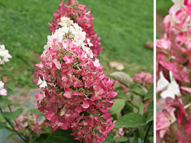 Piękna, efektowna odmiana o dużych kwiatostanach początkowo w białym kolorze, potem różowym, a w końcowym etapie kwitnienia, wiśniowym. Liście zielone, pędy lekko purpurowe. Krzew dorasta do ok. 2 m wysokości, jest zwarty, gęsty, nie pokłada się. Kwiaty pojawiają się na tegorocznych pędach. Odmiana w pełni mrozoodporna i zdrowo rosnąca.