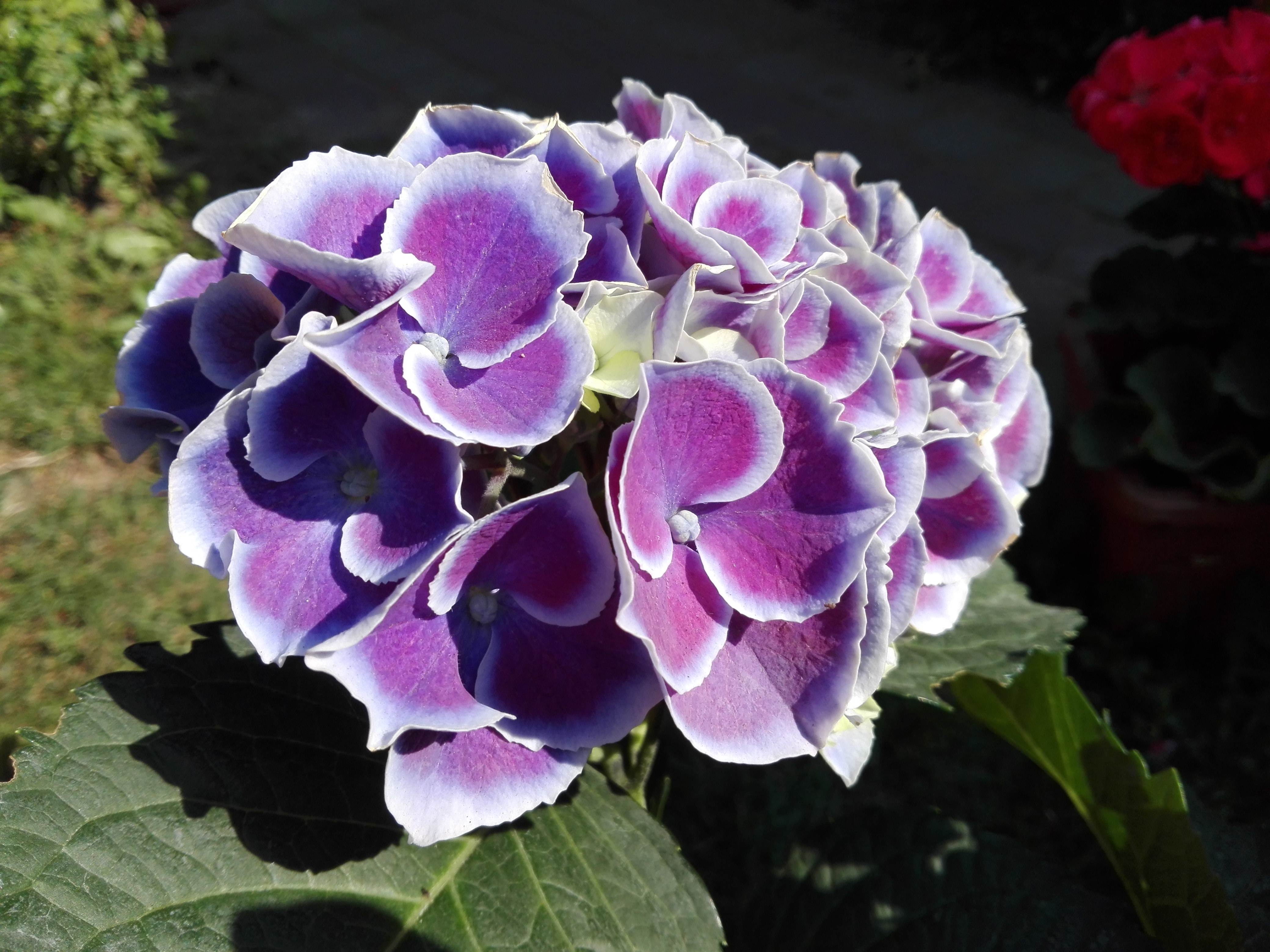 dwubarwna hortensja niezwykle efektowna, robiąca niesamowite wrażenie ze względu na kolor kwiatów, które mają zdecydowane, mocno fioletowe zabarwienie z wyraźną, czystobiałą obwódką. Krzew tworzy gęstą masę gigantycznych kwiatów, które mają średnicę ok. 25cm! Efektownie komponuje się z innymi odmianami hortensji, z azaliami oraz różanecznikami.Preferuje stanowiska półcieniste i słoneczne, lecz nie w bardzo ostrym słońcu.