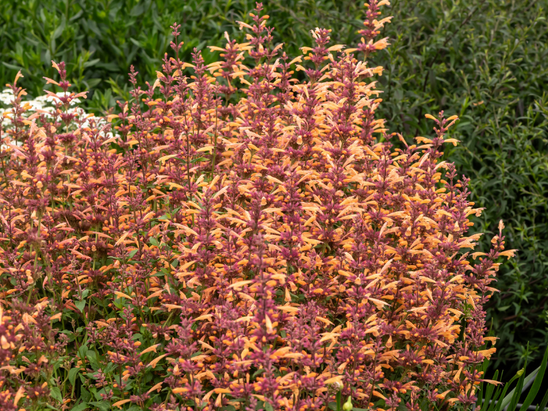 Kłosowiec 'Agastache' Mango Tango Agastache Mango Tango to piękna, długo kwitnąca bylina w kolorze różowo-pomarańczowym. Dorasta do wysokości 40-45 cm. Najlepiej rośnie w pełnym słońcu lub w półcieniu. Gleba powinna być średnio żyzna, piaszczysta. Toleruje suszę. Dodatkowym atutem jest piękny zapach kwiatów. Kwitnie od czerwca do września, jest rośliną częściowo mrozoodporna. Idealnie sprawdzi się na rabatach i skalniakach. Świetnia nadaję się do kompozycji naturalistycznych. Uprawa i ciekawostki -Liście kłosowca są aromatyczne- pachną anyżem, suszonych używa się jako przyprawy lub zaparza z nich herbatę. |