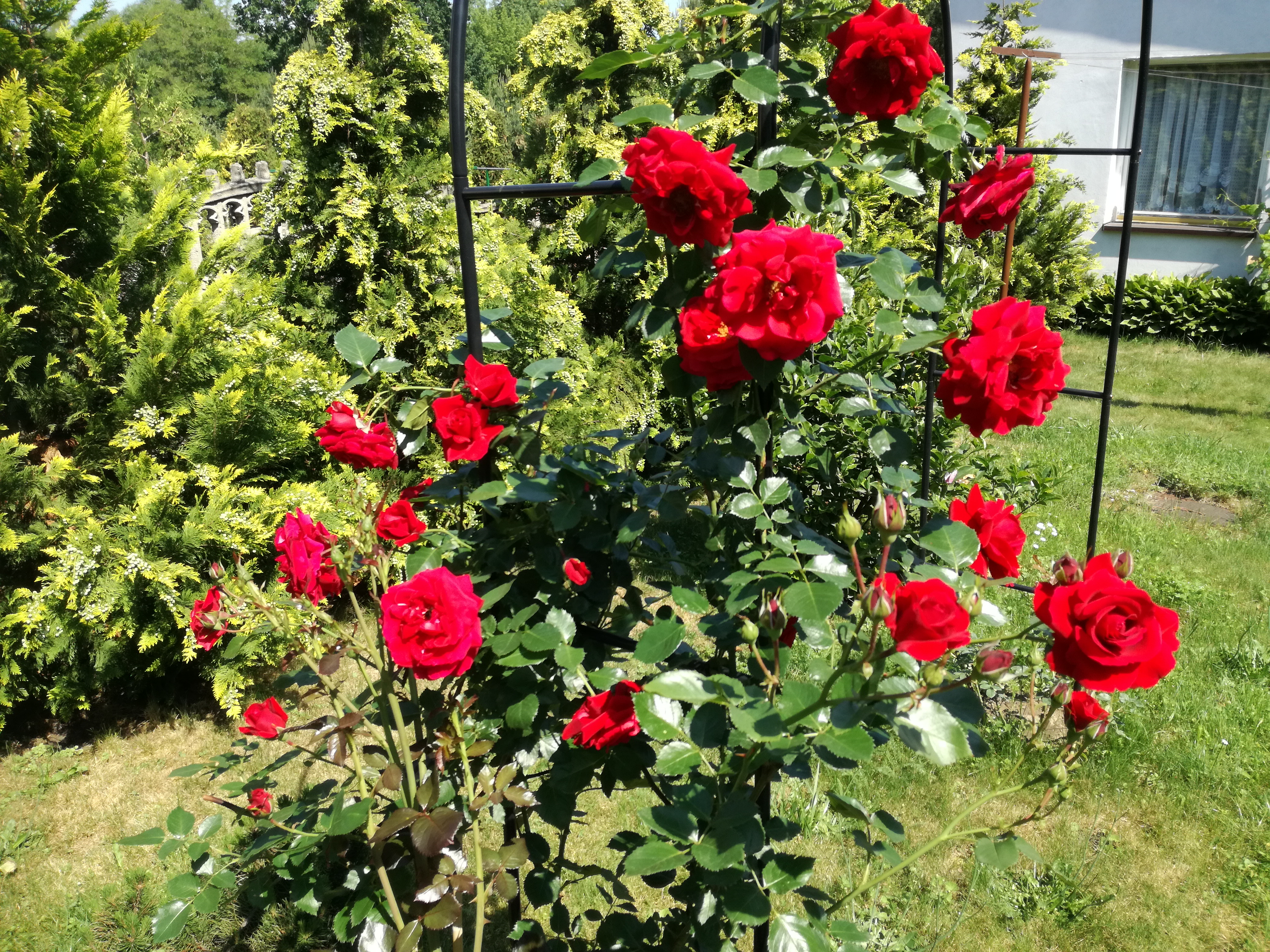 Kwiaty intensywnie czerwone, duże, pelne, pachnące, trwałe, późno lecz długo kwitnące . Pokrój zwarty, pędy grube, wzniesione, wys. 2-3 m. Odmiana wartosciowa. Odporna na choroby i mróz. Do sadzenia przy slupach lub w szpalerach co 1,5-2m.