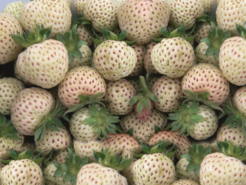 Truskawka biała Ananas Truskawka ananasowa jest rośliną wieloletnią, bardzo łatwą w uprawie. Stanowi zarówno ozdobę, jak i pyszny dodatek do letnich lodowych deserów. Owoce truskawki ananasowej, są niesamowite w smaku ponieważ łączą w sobie ananasa i truskawkę. Owoce są w białym kolorze z czerwonymi pestkami o smaku słodkiego ananasa, rewelacyjne zarówno wizualnie jak i smakowo. Owoc jest dojrzały po osiągnięciu białego koloru i intensywnie czerwonych pestek. Podstawowe informacje: Barwa kwiatów: biała Barwa liści: zielona Okres kwitnienia: kwiecień Okres owocowania: maj Stanowisko: słoneczne Wymagania: najlepiej próchnicza gleba o odczynie lekko kwaśnym Wysokość: ok. 30cm Uprawa i ciekawostki